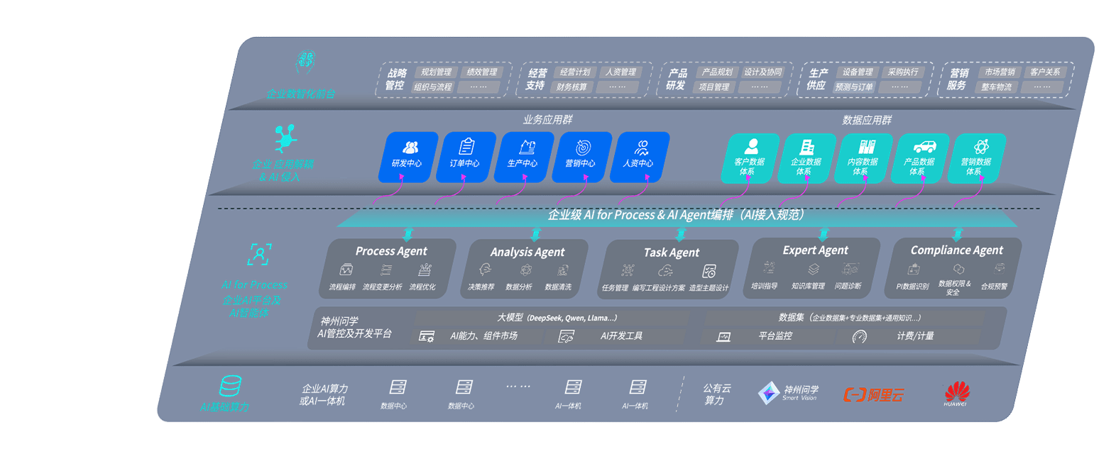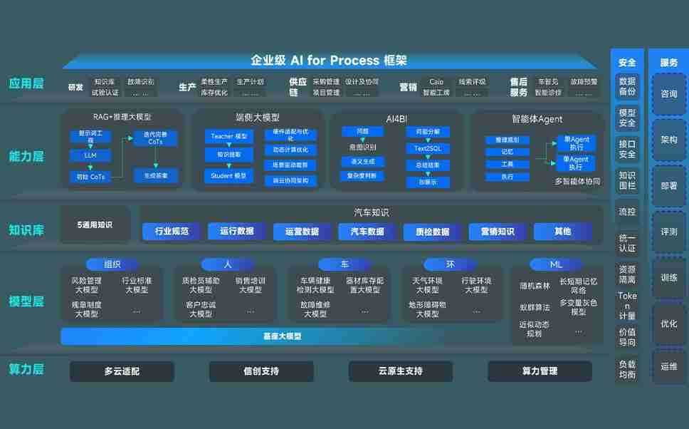 端到端的一站式AI工作空间深度融合了从企业战略规划到日常经营的全流程业务板块,,,,定向解决车企内部领域多、、、、部门多、、、链条长、、、、场景碎片化等难题,,,,支持车企快速构建以AI为核心的生产力写作体系,,实现任务执行与AI能力的无缝集成与交互