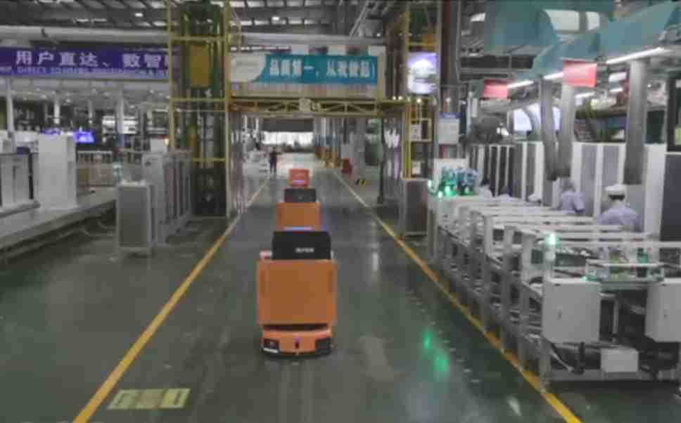 为车载冰箱物流配送打造的智能解决方案,,,包含产中物流通过潜伏举升AMR搬运至线边,,,产后成品物流智能仓储,,流程包含产中物流智能齐套入库,,,,线边安灯叫料AMR智能配送至线边,,,成品入库、、、、出库,,,,通过无人堆高车机器人,,,智能仓储管理替代人工作业管理,,,实现更高存储、、、更高效率、、、更具柔性化的解决方案。。。。